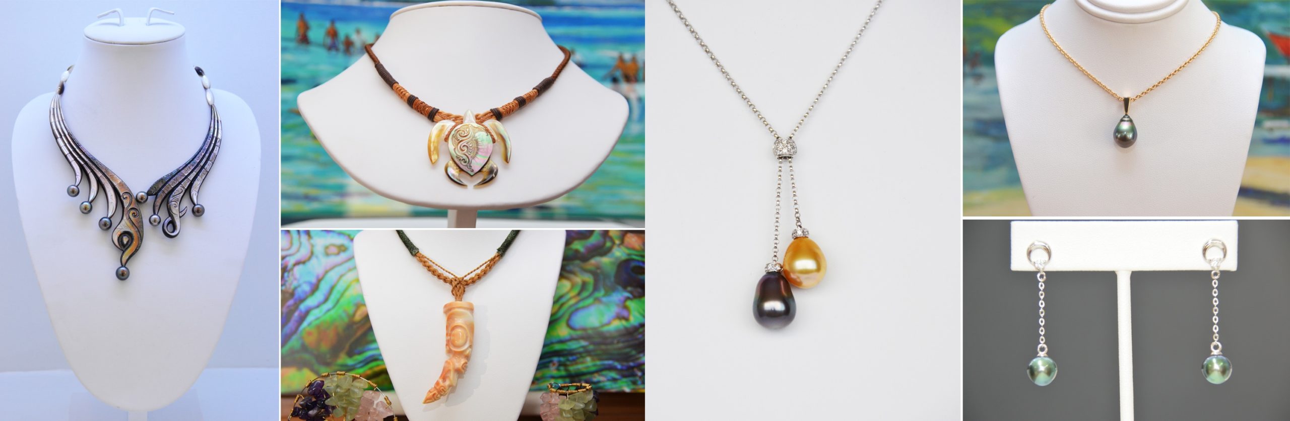 Découvrez un large choix de bijoux en perles de Tahiti, montées sur argent 925 et sur or 750/millième. Colliers de perles des îles Gambier aux couleurs magnifiques, sautoirs, bracelets, bagues etc, à des prix exceptionnels. Laissez-vous tenter également par des bijoux artisanaux en nacres, en fibre de coco et coquillages provenant des îles Tuamotu.