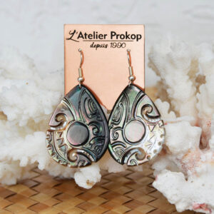 L’Atelier Prokop réalise toute une gamme de bijoux à base de nacre et de bois. Matière première découpée, finement gravée puis polie pour lui donner toute sa beauté.