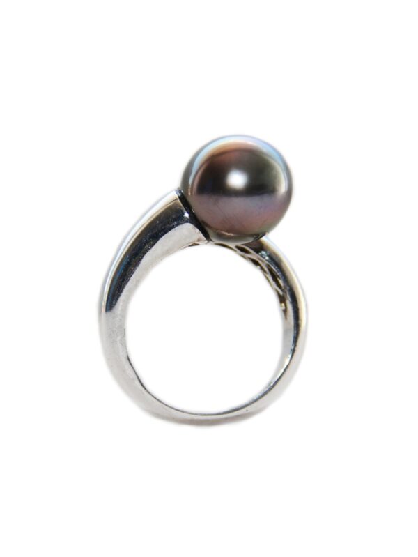 Bague Vaipoe en argent 925 millième (Ø52) avec une perle semi ronde de Tahiti (des îles Tuamotu / Gambier), diamètre Ø 10,9mm – qualité A.