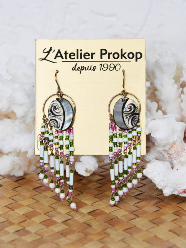 L’Atelier Prokop réalise toute une gamme de bijoux à base de nacre issue des huitres perlières de Tahiti. La Pinctada Margaritifera, également appelée « huître aux lèvres noires » est un grand mollusque bivalve. On ne la trouve que dans quelques lagons du Pacifique. Source production des perles noires de Tahiti et de métiers comme ceux de nacrier, bijoutier ou graveur.
