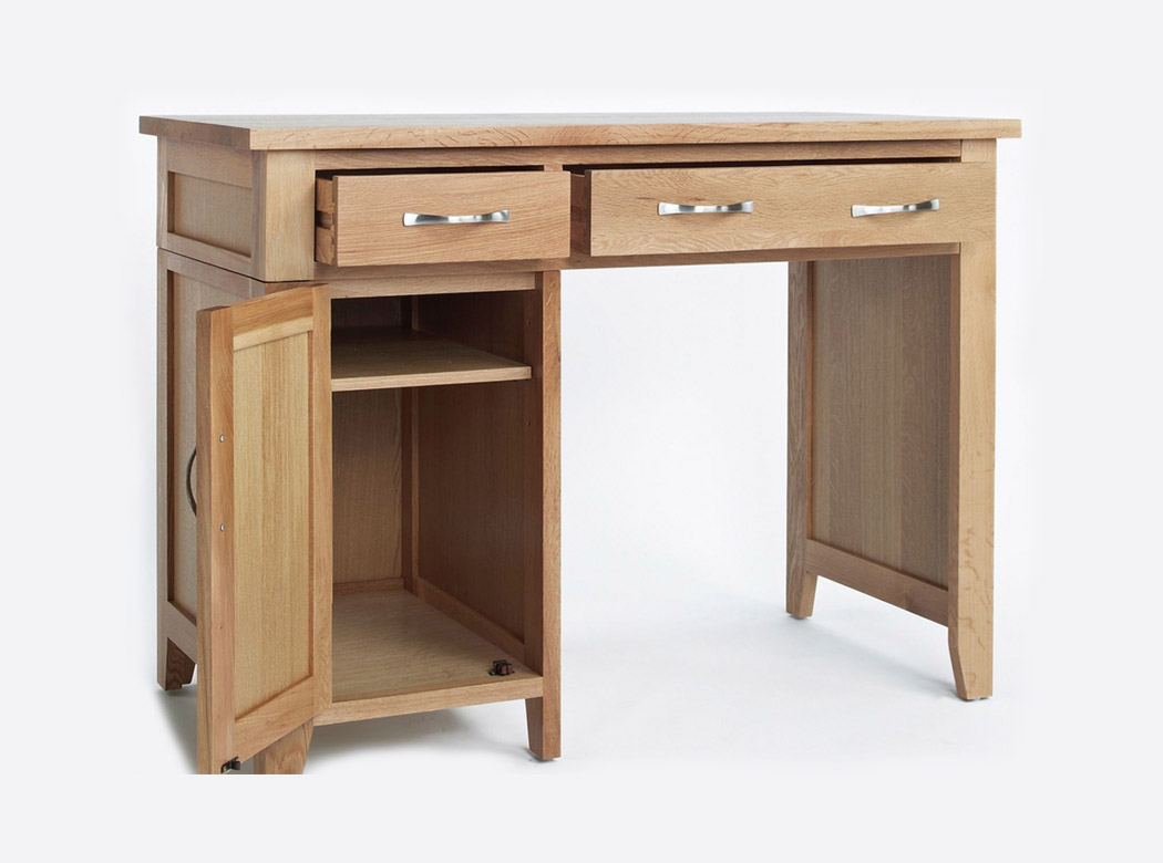 Bureau équipé de modules de rangement comme des niches et tiroirs, permet de ranger les stylos, feuilles et autres fournitures.