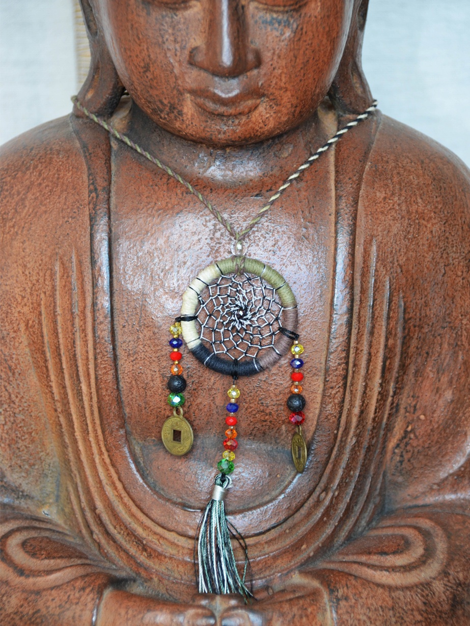 Tour de cou en fil de coton torsadé et pendentif attrape rêve