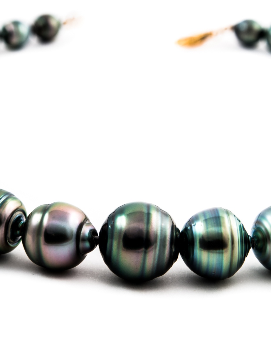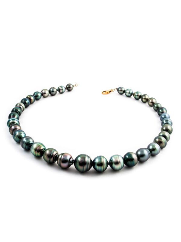 Collier de 35 perles cerclées de Tahiti : Ø10.1 à 14.5