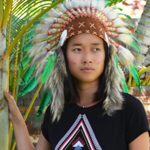 Ce foulard peut être noué dans de nombreux styles différents. Sur le côté, ou sur le dessus de votre tête pour plus de volume.