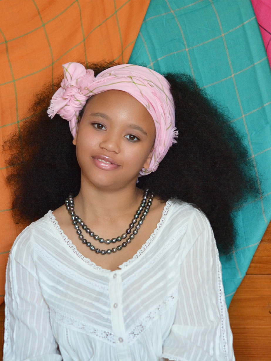 Foulard Turban à carreaux Zoe Dézil en vente sur Ohlalagooddeal et proposé par la boutique Mimpi Manis.