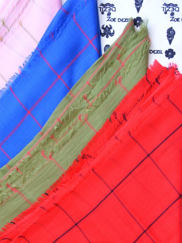 Le foulard turban à carreaux Zoe Dézil en vente sur Ohlalagooddeal se porte très bien comme une écharpe aussi.