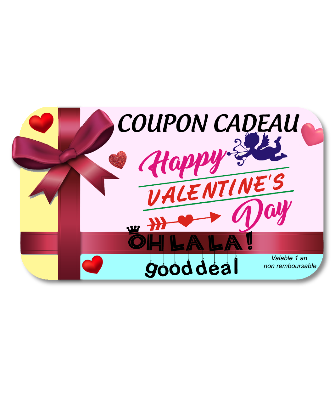 Notre plate forme de vente en ligne ohlalagooddeal les personnalise pour les plus grands rendez-vous annuels. Comme Noël, la Saint Valentin ou la fête des mères (pères) … Bien entendu, le reste de l’année n’est pas exclu, tout le monde a toujours quelque chose à fêter. (anniversaire, naissance, mariage, obtention d’un diplôme, enterrement de vie de garçon ou de jeune fille etc…). En outre, le coupon cadeau Saint Valentin comporte de nombreux avantages. Hormis sa simplicité d’acquisition et d’utilisation, elle permet surtout d’éviter les déceptions des mauvais choix de cadeaux. Dur de choisir le bon cadeau ou vous ne savez pas quoi offrir ? Ohlalagooddeal vous simplifie la vie, optez pour le coupon cadeau qui correspond à votre budget !