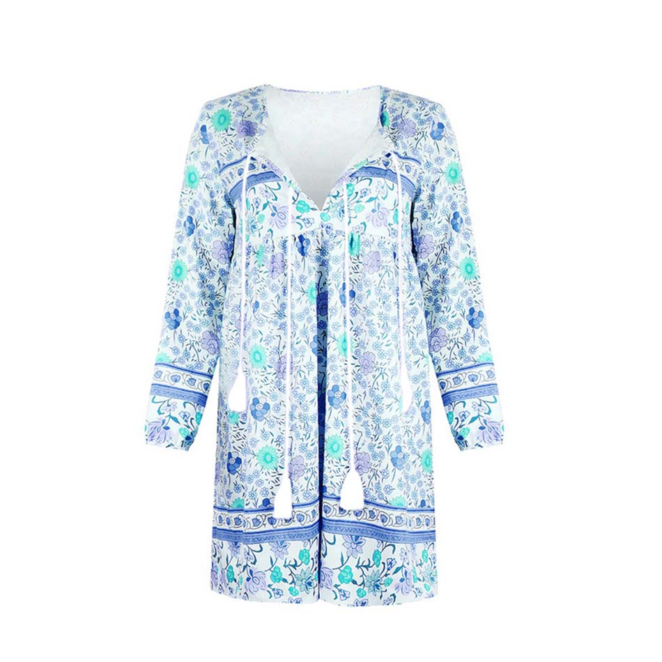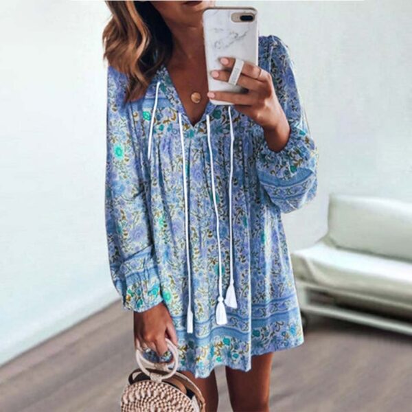 Robe bohème courte à manches longues