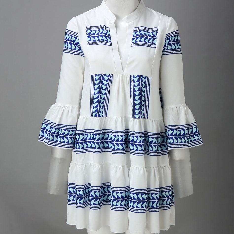 Couleur : robe blanche avec imprimé bleu