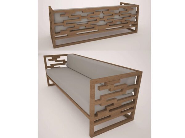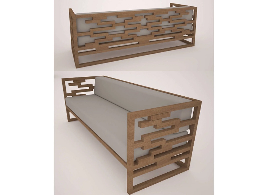 Sofa 3 places en teck avec dossier et côtés ajourés