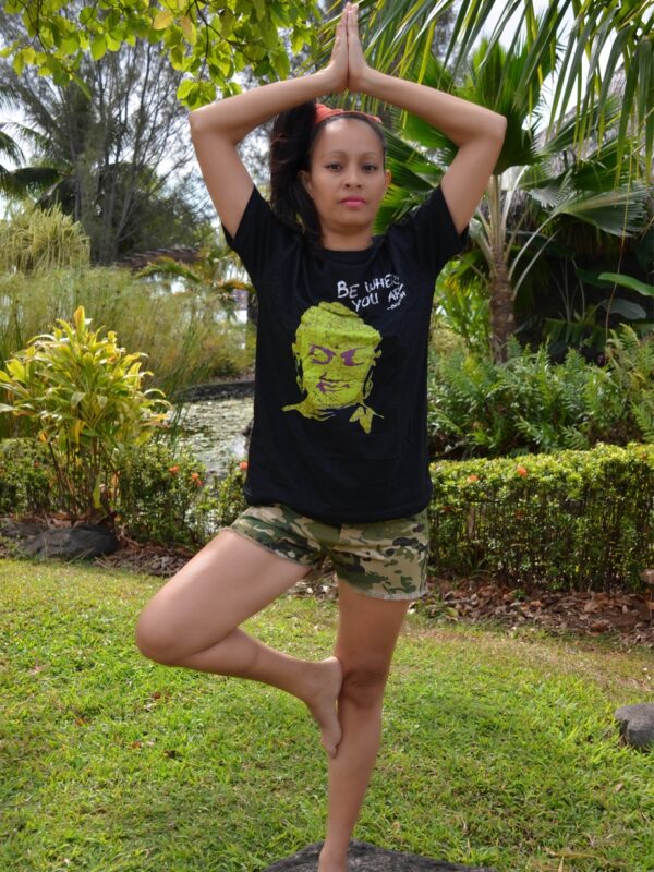 Dans ce t-shirt en coton noir imprimé de la tête de Bouddha en vente sur Ohlalagooddeal, votre plateforme de vente en ligne, vous vous sentirez à l’aise !