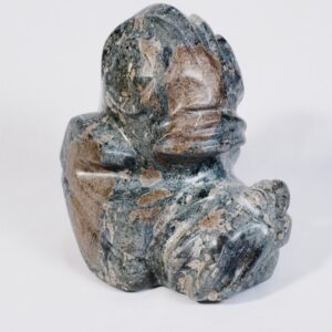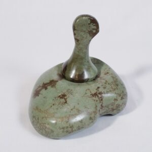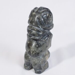 Plutôt trapu, il a les bras appuyés sur son ventre et sa tête est souvent hors de proportion avec le reste de son corps. Son visage est si expressif qu’avec ses grands yeux il vous donne l’impression qu’il vous regarde tout en observant ce qui se passe autour de lui. Sa bouche est généralement ouverte et vous laisse imaginer qu’il crie.