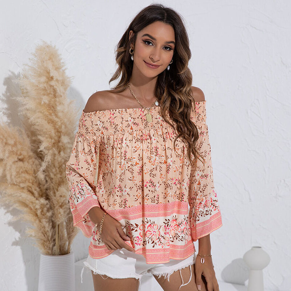Affichez votre style bohème dans ce top smoke rose chic. Le motif floral vous mettra en valeur car il pend joliment sur votre corps. Avec des manches mi-longues et épaules dénudées.