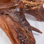 Tandis ce que l’extérieur a été gardé brut avec quelques parties gravées de motifs marquisiens.